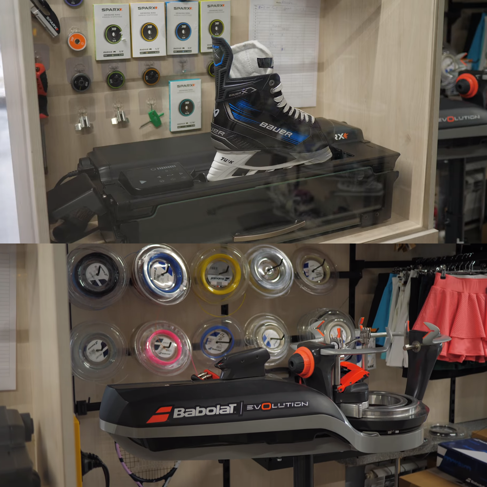 Натяжка струн на теннисные ракетки.